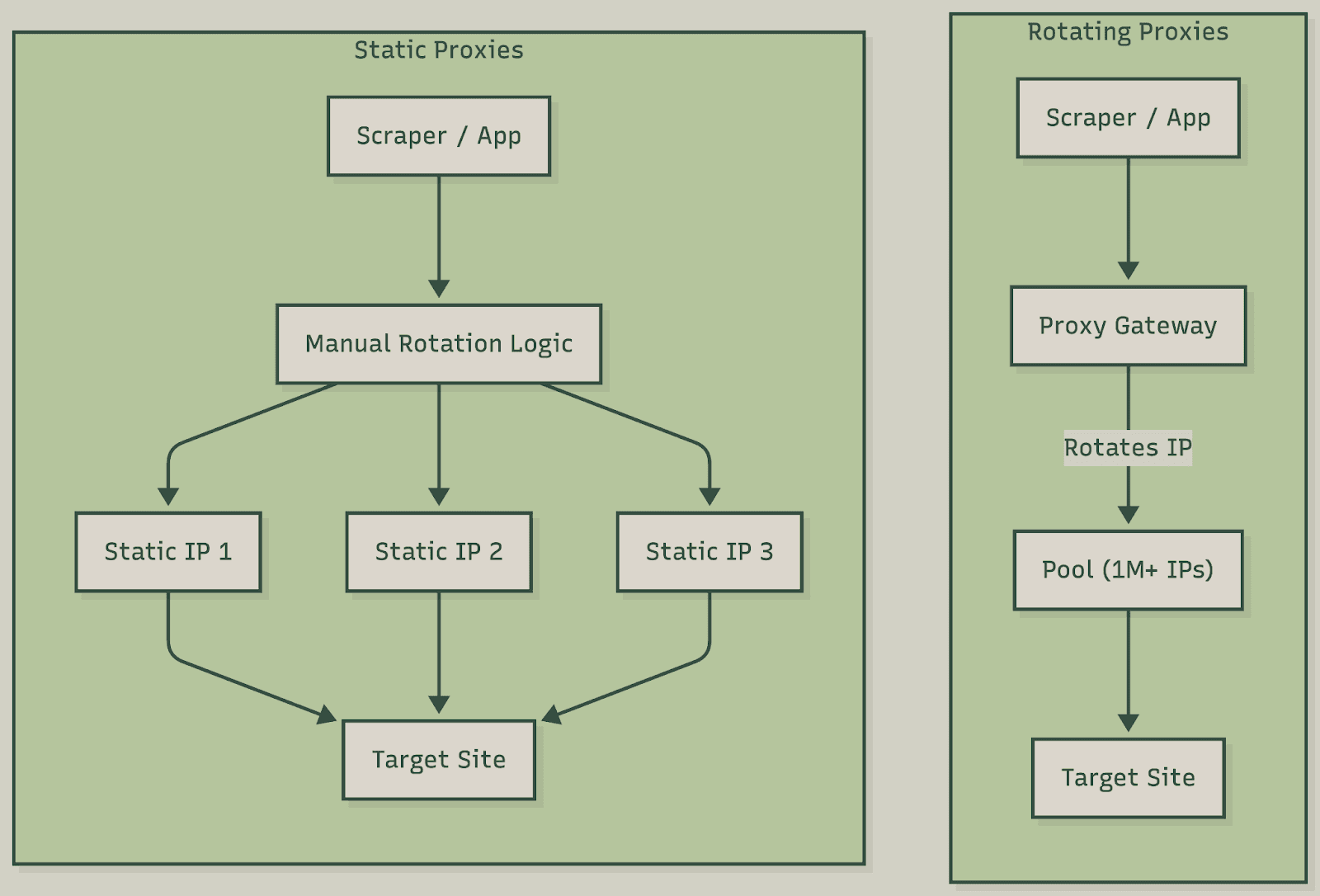 IP management | Provider handles pool, health, and rotation | You manage the IP list and rotation logic |
