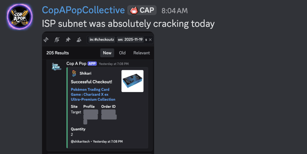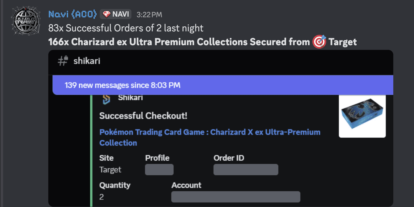 Real Pokémon Center, Shopify & Target success logs shared daily.